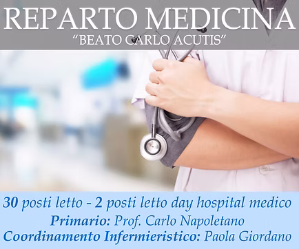 Ricoveri ordinari di Chirurgia, Day hospital di Medicina, Medicina interna, Visite di Ematologia
